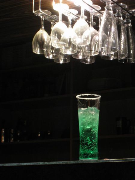 入場後穿著朱紅色洋裝的我向吧台點了一杯「綠色奇蹟」