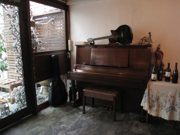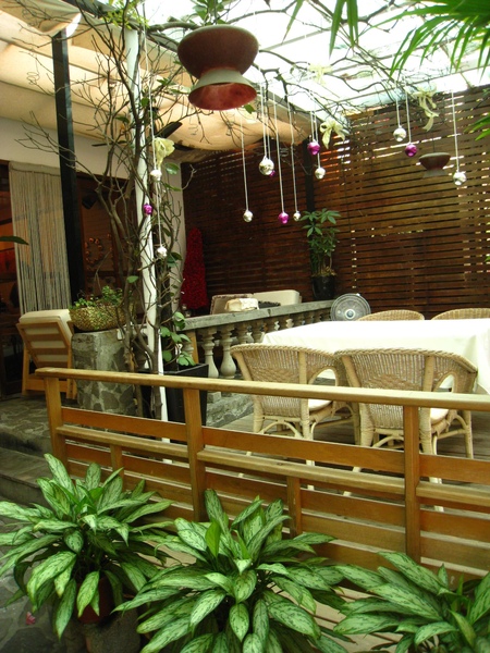入口處有個擺設著桌椅座位的小庭院.看起來很愜意