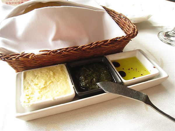附了三種醬料:橄欖油醋醬&羅勒醬&甜奶油