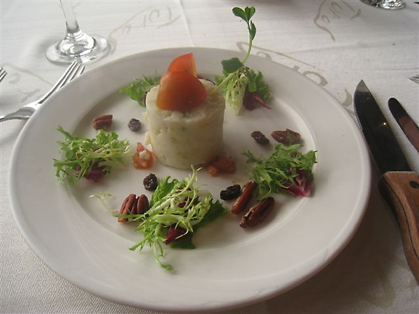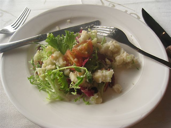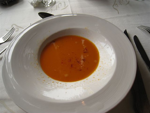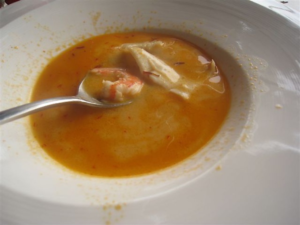 法式海鮮湯的味道很特別,浮在湯面上紅紅的是saffron(我玩restaurant city看這個食材這麼這麼久終於真實吃到了)