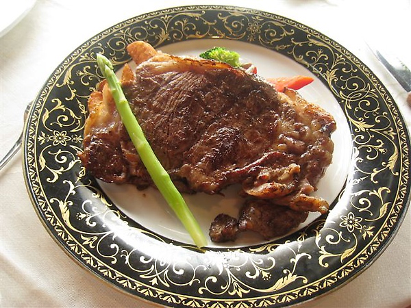 有鑒於許多看起來很不錯的餐廳套餐附餐華而不實,擺盤漂亮但不具特別之處,甚或根本就是地雷的大有餐廳在,而且Toros的菜單風格不純,開胃菜裡竟然出現「泰式涼拌牛肉」、沙拉菜單有「田園沙拉佐和風芝麻醬汁」,加上用計算機來來回回計算牛排價格和份量,並參考了親切的服務人員建議,最後選擇單點「鮮切美國安格斯紐約客牛排」和菲力牛排套餐。