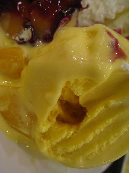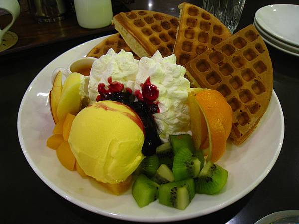 鮮果鬆餅看起來很美味,但看一下冰淇淋喔!很空心吧?