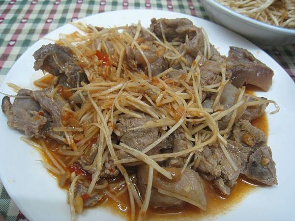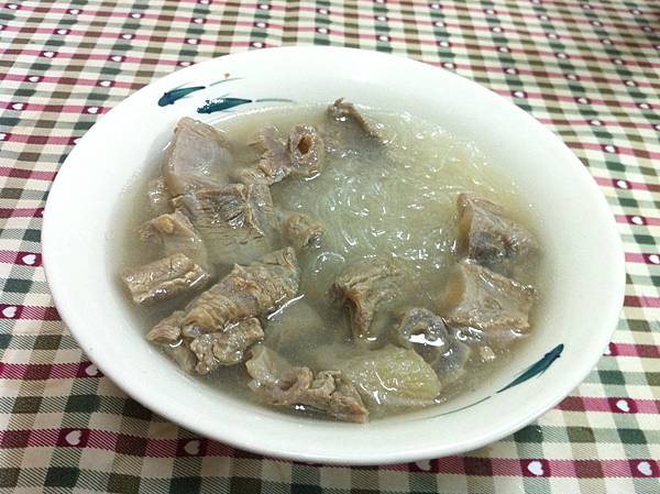 不過目前「無雙牛肉」的牛肉已經很棒嚕!我特別喜歡乾拌帶肉牛筋和牛肉片湯,這兩道菜都是原汁原味風格,若吃慣紅燒、酒燉類的牛肉料理,也許有些難以理解,但如果懂得品嚐,就能體會其可貴之處。乾拌帶肉牛筋是「無雙牛肉」菜單上最高價的菜色,但真是令人回味無窮,因為此處的牛筋咬起來彈黏,咀嚼之中膠質口感和牛筋側一層薄瘦肉的纖維混合,除了豐富層次,也增添牛肉清甜與馥香;我也曾點過帶肉牛筋細粉,但覺得味道實過於淡薄,有了乾拌醬汁和薑絲的襯托和導引,帶肉牛筋美味十足。