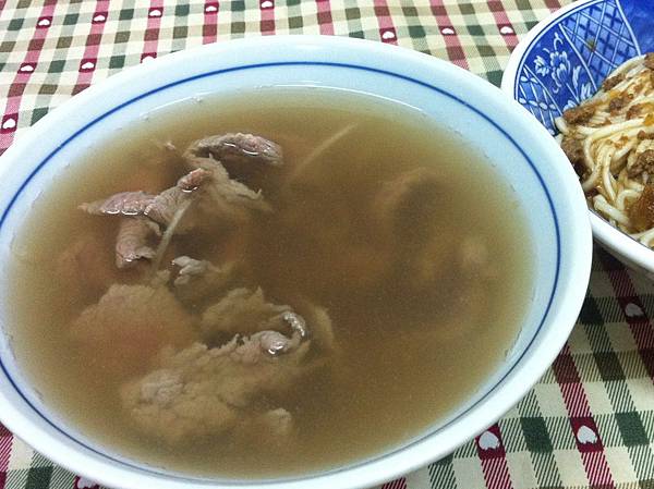 而牛肉片湯的湯頭鮮甜沒話說,我喝得津津有味,這都是因為老闆所採用的牛肉肉質好,自然的甜味和肉香彷彿天生麗質的美女,輕施脂粉即令人驚艷,尤其在台北,各種牛肉麵店的湯濃妝豔抹居多,要找到如台南本地的牛肉湯般的好味道實不容易,如此想來,便又更感到「無雙牛肉」的珍貴了。