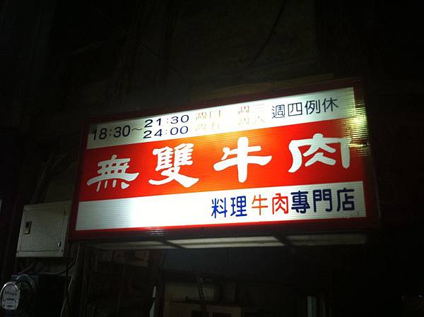 去過好幾次樂華夜市都沒找到「無雙牛肉」,經過詢問,才曉得「無雙牛肉」藏身於樂華蚵仔煎旁邊的巷子內,而且當時該條巷子裡剛發生嚴重火災燒了幾間房,「無雙牛肉」因此歇業了一小段時間。