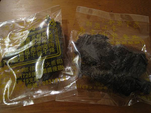 這就是廣來商店的原汁火烤牛肉干,一包一百元,口味扎實偏硬,非常耐嚼,很獨特的是咬在嘴裡真的是火烤味十足,若論美味我還是比較最愛馥御牛肉干,但一想起老爺爺和老婆婆便覺得滋味無窮~