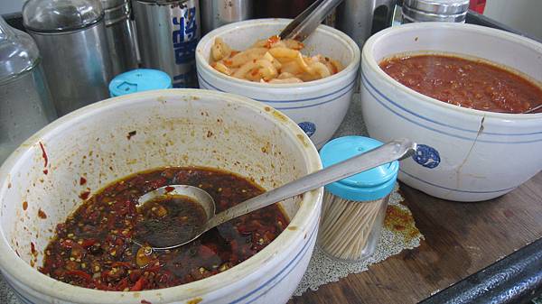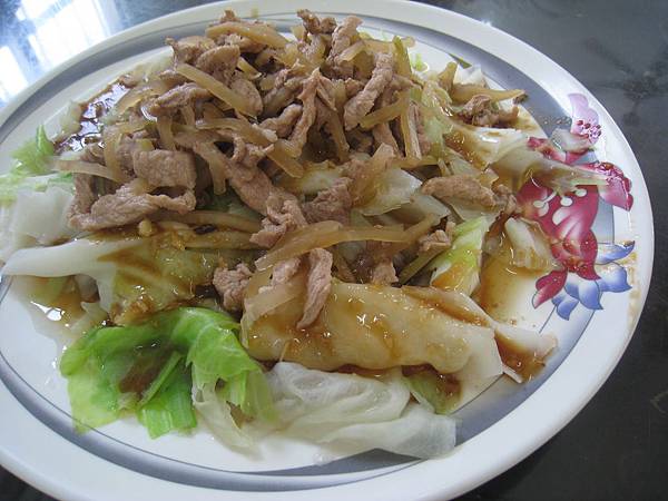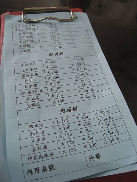 「山東麵店」店面很寬敞,但我們入內的時間並非假日,卻因為客滿而需要和陌生人併桌用餐,不過也幸好是併桌才發現無論是湯麵或煎麵份量都好多,很含蓄地只點了一份牛肉煎麵和一份燙青菜,就吃得很飽,否則我還真想要再來一碗牛肉麵哩!
