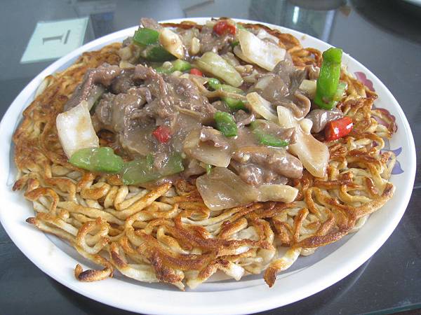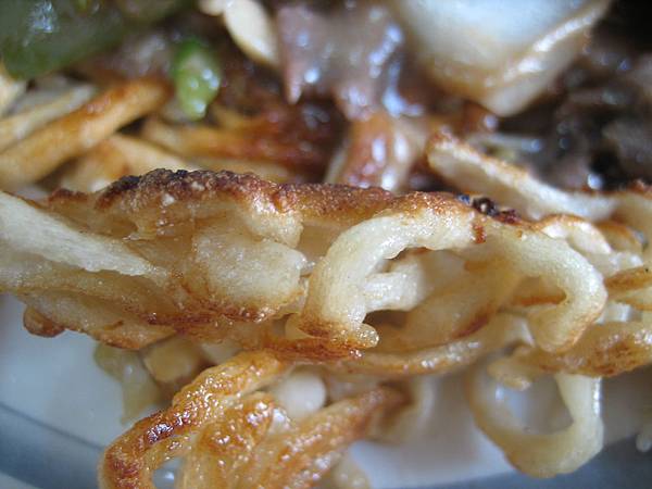 煎麵和廣式炒麵或雙面黃有很大的不同,使用的是較粗的麵體,煎麵雙面外皮酥脆,中央帶點嚼勁,「山東麵店」的牛肉煎麵一上桌變香味四溢,熱騰騰的時候味道和口感都相當不錯,可是隨著溫度的散失便會發覺油膩感,還沒把煎麵吃完,傾斜盤子就可以發現使用的油量不少,我是可以接受重口味但無法忍耐油過多的人,所以雖然牛肉煎麵好特別也好好吃,但可惜的是冷掉以後,我就沒有辦法繼續吃了,我忍不住想…倘若再烤過能不能改善這個缺點?