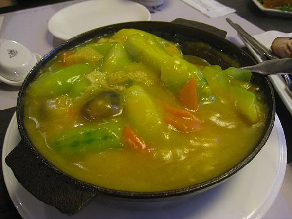 「竹里館」食材品質也掌握得不錯,質感好快最顯而易見的就是海鮮,用餐當天第一道上桌的「竹里雙鮮」以富有層次感方式表現,從視覺上就打開了食慾,難得的是透抽保留了鮮甜原味和彈性,也就是海鮮最可貴的自然的風味了!又如「龍井蝦仁」一盤能有二十來尾口感彈牙的乾淨鮮蝦仁,我想都是一般平價中式餐廳不容易做到的。朋友們也一致讚賞「白毫玉葉雞米」肉香且口感細緻,「普洱東坡肉」的腴美不膩,連平常不吃肥肉的我,也覺得「普洱東坡肉」好好吃!遠道而來的新朋友則是在嘗試第一口「黃金竹筍絲瓜」就驚呼口味的特別,我嚐了一口發現所言不假,澄黃的南瓜醬汁狀貌濃稠但味道清爽,絲瓜瓜肉肥厚,我暗自對於選對餐廳而竊喜,我證明了台北可不是只有賣氣氛的館子呀!