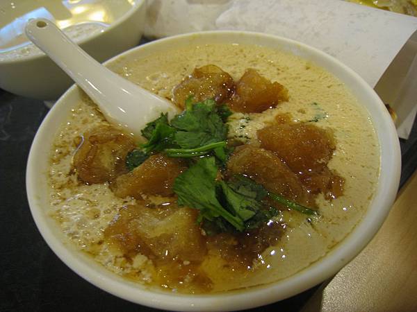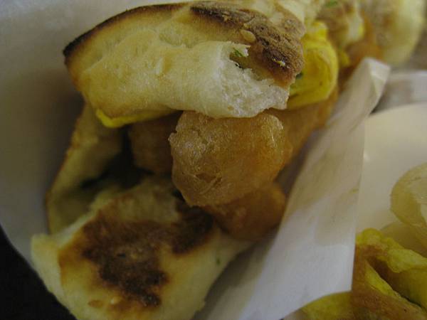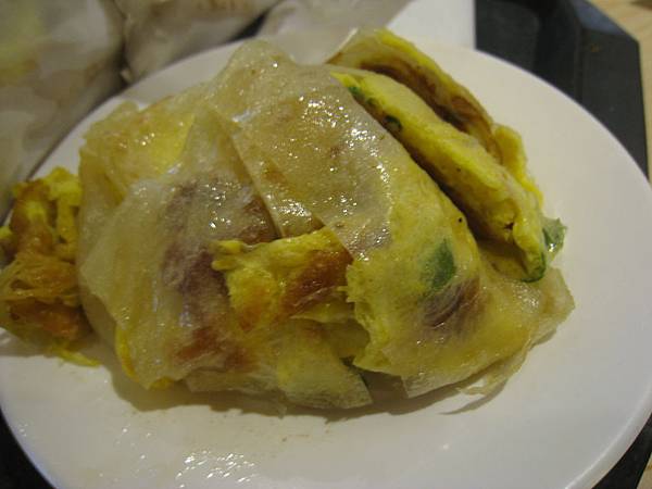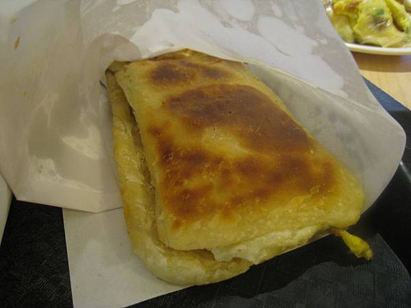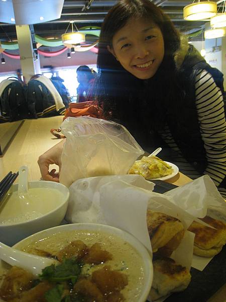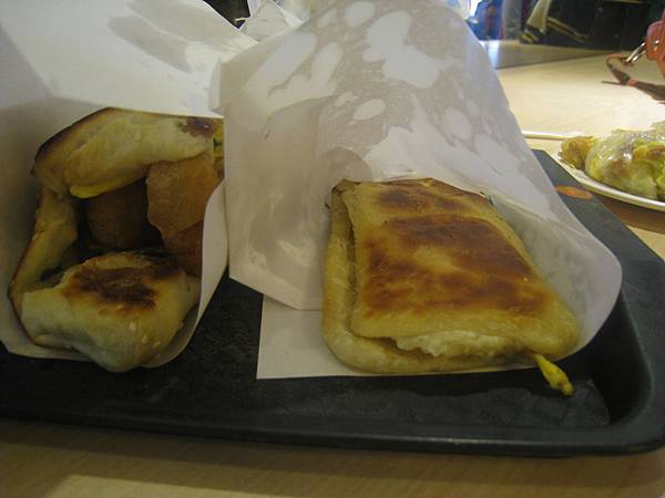 也許是因為先吃了很獨特的鹹豆漿和蛋餅,導致於大名鼎鼎的厚燒餅味道雖不錯,卻沒令我感到很驚奇,但我還頗喜歡蘿蔔絲餅的,內餡是炒過的蘿蔔絲,味道很香,搭配微甜泛豆香的豆漿,無疑是生活中的小確幸。