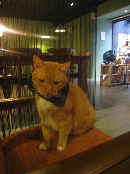 此番還認識了像王子一樣的貓咪「豹頭」,他好端端地擺好姿勢定格許久讓我拍照,直到我放下相機他才優雅地跳回地面,緩步輕移地離開,不都是人逗貓嗎?但我卻被「豹頭」像是搬演專業模特兒般的舉動逗笑了。而且好幸運的是遇見Tina烤的蛋糕出爐,她竟好大方地招待了我和朋友一大塊,讓我們很是驚喜!我和朋友閒聊許久,甚至等到另一位朋友遠從內湖而來,直待到傍晚,沒有限時用餐壓力,更沒有連鎖餐飲店刻意採取的打掃干擾或間歇性加強冷氣的伎倆,