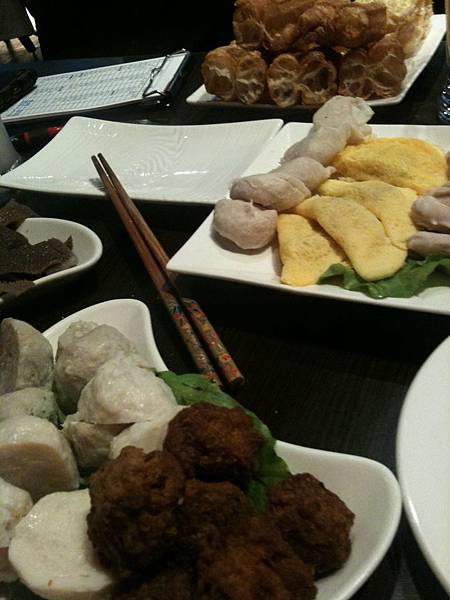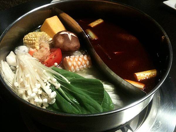 剛上桌的鍋,那個菱格紋火鍋料以前好像都沒看過耶...還是都偷偷被別人吃掉了?所以這次我一直都盯著,後來發現味道也沒有特別出眾啦......