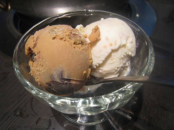 而且我一定要大推薦一下「春花麻辣鍋」的甜點,記得一定要點「綜合口味」,同時我也建議先吃乳白色的夏威夷果冰淇淋,再吃可可色的花生冰淇淋,當然,要把兩種果仁混合吃下也沒有什麼不可以,重點是果仁香氣濃郁,錯過這美好的收口絕對是遺憾喔!