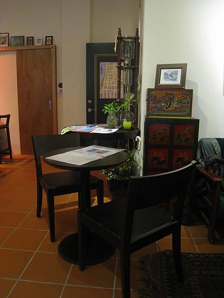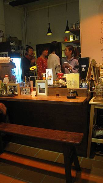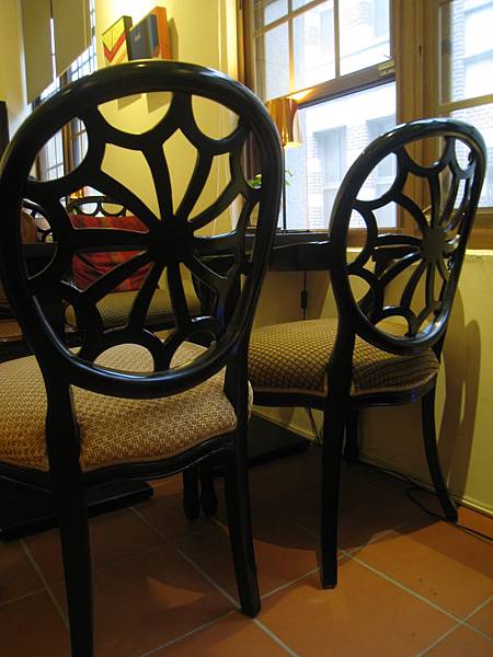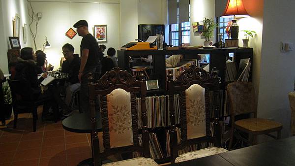 現在,因為政府補助政策,迪化街興起重整修建的工程,比較可貴的是「屈臣氏大藥局」由後代子孫的建築專才整建,詳情可見http://blog.udn.com/article/trackback.jsp?uid=vincent1070&aid=3216265。而「爐鍋咖啡」正位於其二樓的一個空間裡,道地舊式中西合璧建築,咖啡店老闆的巧思佈置,復古摩登的氛圍濃厚,我們一行三人打從踏入門口看見吧台和吊燈就喜歡,可惜恰逢假日人滿為患,留了手機號碼,趁下樓時和同樣也是沒有位子坐而退出店外的兩名高壯外國男子打了招呼,沒想到竟然是來自荷蘭的編輯和攝影師!攀談以後還拍了照,與他們道別後沒有多久,我們就接到幸運獲得窗邊大桌子座位的來電通知。