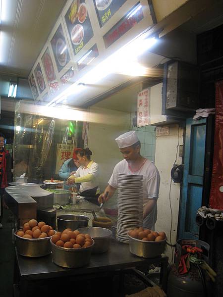 而蛋包瓜仔肉湯正是緊臨著蚵仔包隔壁的「鴨頭」,雖然寧夏夜市裡有幾家賣蛋包湯的攤,卻極不容易在別地方見到這樣的料理,以前我曾在靠近民生西路的攤子吃過蝦仁蛋包湯,但不愛那沒有自然鮮彈感的蝦仁,只喜歡可愛又可口的蛋包,所以此次換個口味,改吃口碑甚佳的「鴨頭」蛋包瓜仔肉湯,雖盛名不虛,但也有點名不符實啦,因為嚴格來說,「蛋包脆瓜赤肉湯」比較貼近這碗湯,普遍認知的瓜仔肉是將脆瓜和絞肉混在一起再烹煮,可是「鴨頭」蛋包瓜仔肉湯裡每一種食材都是分開烹煮,但湯的味道裡有脆瓜的鹹甜,脆瓜仍保有脆度,肉羹的口感也很好,算是很好吃的一道湯料理,至於蛋包,蛋白口感很好,比白煮蛋來得濕潤腴滑,我一直覺得這樣細緻緊彈的蛋白質感有些近似於新鮮的蟹螯肉,既特殊又討喜,吃都吃不膩。
