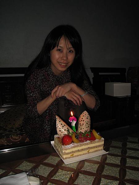 真的沒料想到午餐和晚餐會是和難得見面的朋友度過耶!我覺得自己好幸福!想起來眼角都會感動得泛淚光!而且回到家以後,我弟和去年一樣又買了一個國賓飯店繽紛蛋糕坊的蛋糕給我哩!燭光中媽媽和弟弟很認真地唱了生日快樂歌,溫馨滿點啦!