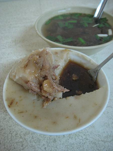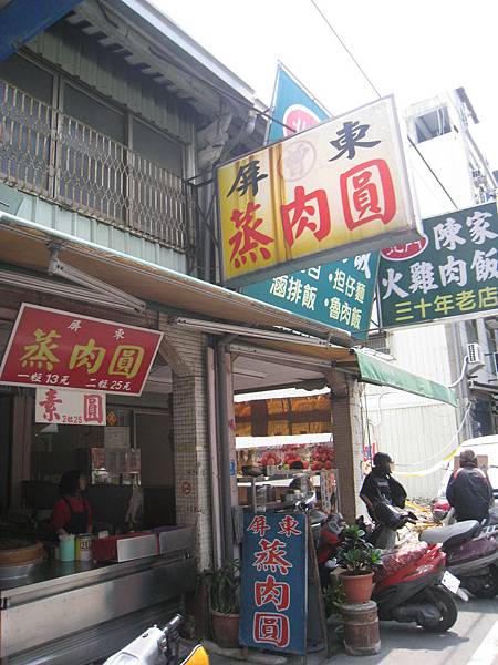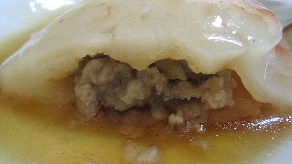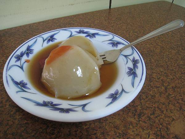 離「劉里長雞肉飯」不很遠的還有大名鼎鼎的「北回水晶餃」,個頭和包子一樣大,但我吃的是隔壁的「屏東蒸肉圓」,這小店是我弟在嘉義的最愛,他從小吃到大,二十幾年來味道都沒變,肉圓皮一樣軟滑彈溜,內餡帶有胡椒香。我個人還是比較喜歡曾在台南吃過的蒸肉圓,但嘉義市這家「屏東蒸肉圓」附贈了碗清湯,瀰漫濃濃柴魚香,整套給予人一種溫暖的滿足感,加上老闆娘純樸親切的笑容,著實也是很令人難忘。