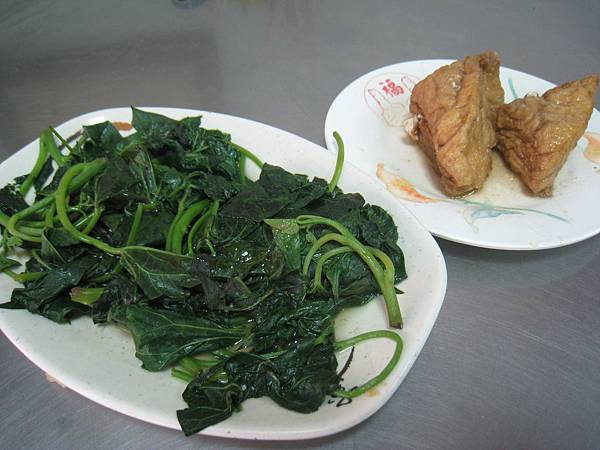 >.<醬汁味道超級詭異的燙地瓜葉,旁邊的油豆腐很平常,沒有什麼特色......