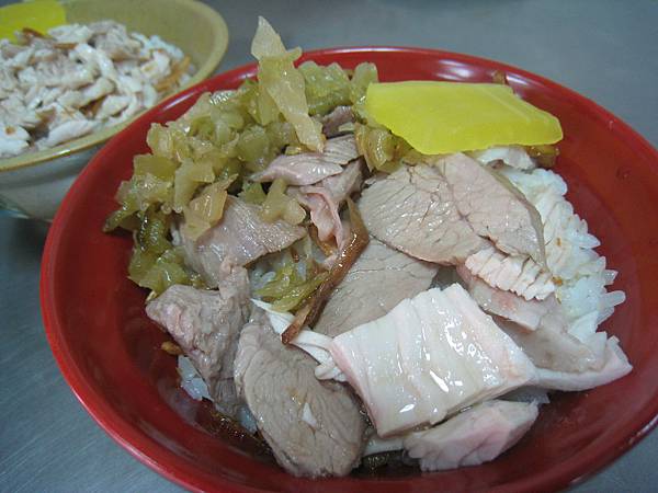在大大小小的店鋪攤販中,「劉里長雞肉飯」算是人潮最誇張的,猜想應是google map上有所標示的助益,不過我和我弟依然好奇地去排隊,發現才中午而已,竟有雞腳湯、赤瓜肉仔丸湯等品項都已售罄,我們都覺得雞片飯還算差強人意,雞肉飯則香氣不足、肉質偏乾,燙地瓜葉的醬汁調位更是詭異得讓我們大驚。事後問過大姑姑,她說這間店以前口味的確不錯,自從連非假日也門庭若市,她就再也沒有去過了。我忍不住懷疑…是不是那些提早賣光光的品項才是極品?