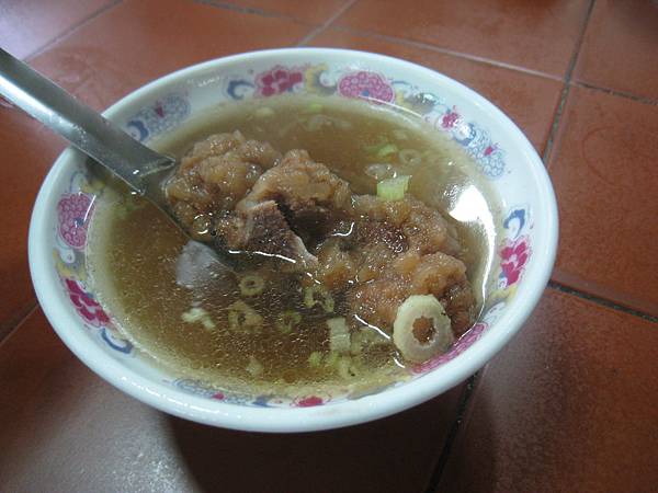 我同時間也點了排骨酥,原來還打算在心中希望此攤能與北投蓬萊排骨酥較量,結果老闆端上來的是排骨酥湯哩!因為浸在湯裡的排骨酥外皮一點點也不酥了,實無法比較,而且因為我喝過讓我心花大放的龍骨髓湯才嚐排骨酥湯,一點點也感覺不出特別之處!我問了喜好肉食的弟弟,他也認為湯品真不是能好好論斷排骨酥優劣的方式,但這明明是招牌菜不是嗎?