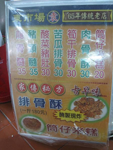 走進東市場內的熟食區才能找到這攤,話說...不知道為何...我第一次去竟能殺進市場裡面直接找到@@我想尾隨在後的弟弟應該覺得很詭異吧......再說說..看一下價目表,超實惠的價格讓我真想橫掃通吃!
