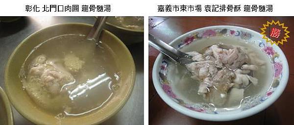 我之前每去彰化北門口肉圓必點龍骨髓湯,但如果和嘉義市東市場袁記排骨酥相比,真是小巫見大巫,因為嘉義市東市場袁記排骨酥的龍骨髓湯的湯頭香,除了淡雅的中藥氣還有香菇味,毫無腥臊,重點是價格和彰化北門口肉圓相同,但骨髓質地較為綿厚,因此口感很好,柔滑腴潤加倍,份量也比較充足,想起來就垂涎三尺呀!我再也不想念彰化北門口肉圓的龍骨髓湯了!