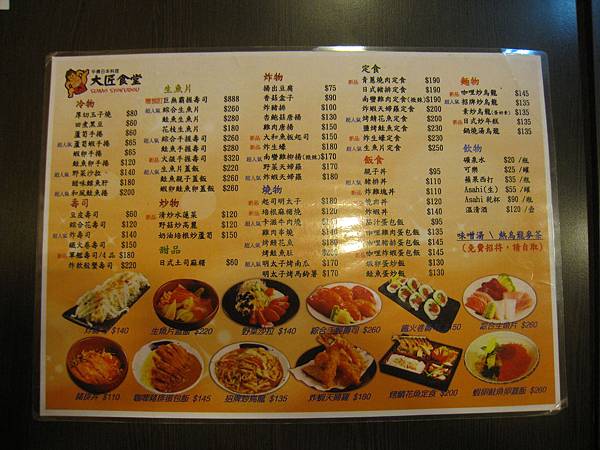 所有的菜色都在這一~大張菜單裡嚕
