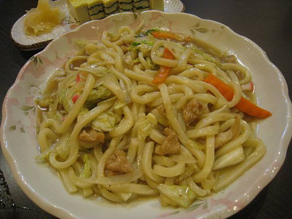 至於招牌炒烏龍的表現倒是普通,我個人比較喜歡添財壽司屋的炒烏龍,清炒水蓮菜算清爽,一餐之中來點這樣的蔬菜是頗健康的,覺得略有微詞的是厚切玉子燒和揚出豆腐,玉子燒的賣相不壞,可惜調味不夠好,但最糟的莫過於是揚出豆腐了,外皮軟韌不酥,大約是我生平吃過表現最糟的炸豆腐料理了……