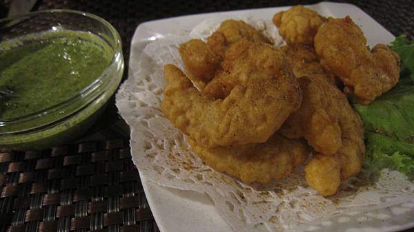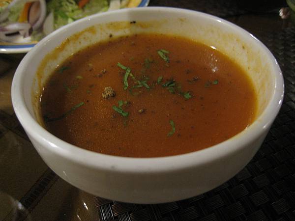 我們點的餐點如下:鹽酥蝦、串燒碎羊肉、番茄湯、生菜香料沙拉、特級雞肉咖哩、香料蔬菜飯和奶油烤餅,雖然份量是超過正常兩個女生食量的,可是為了吃得盡興,我們根本沒管份量或價格的,能有這種飯友真的很難得。