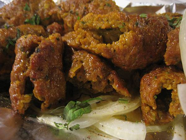 而我比較驚豔的是串燒碎羊肉和香料蔬菜飯,我其實是不甚愛碎肉料理的,可是串燒碎羊肉一上桌香味撲鼻,惹得我們食指大動,一入口發現絲毫無羊騷味,香料味和肉汁香厚重濃郁,簡直都想要和耳邊的印度音樂一起手足舞蹈了,雖然辛辣卻有點難停嘴止食,我趁熱就吃掉半份;而香料蔬菜飯也是讓我一口接一口的,使用的長米粒口感很好,不硬卻很軟彈,而且毫無油膩感,甚至想要再專程來吃其他的飯類料理。