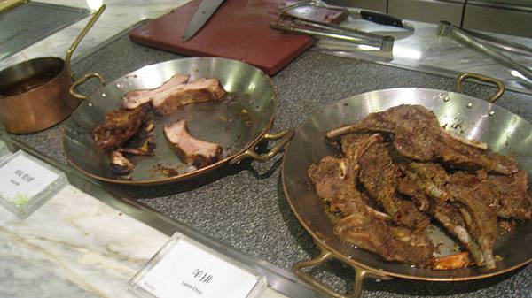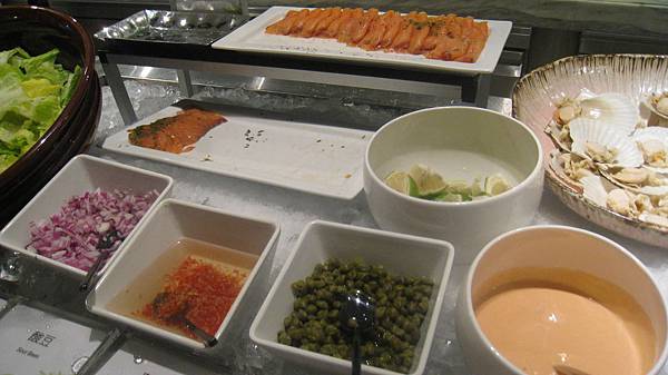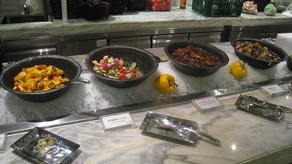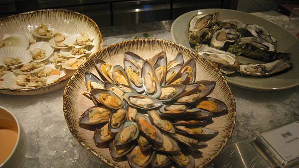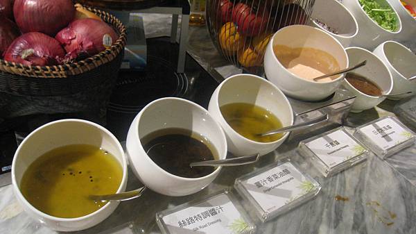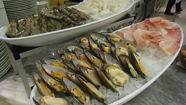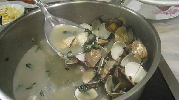 六福皇宮絲路宴場地很大,不過吃到飽餐廳總是半桶水響叮噹,從生魚片、印度料理到各種中西式菜色和甜點,樣樣通、樣樣鬆,也難免有些彷彿濫竽充數般撐排場,幸好也有好幾樣餐點口味不錯,比較值得多吃一些:吧台上外國廚師煮不停的白酒蛤俐,雖然香氣略薄但肉質還算厚實鮮美,表現不輸一旁的蕃茄海鮮湯,我其實很喜歡蕃茄海鮮湯,這裡的花枝還精細刀工地把表面切劃細格紋,添增了煮熟後的口感;還有沙拉吧也是滿不錯的,生菜爽脆而且提供很多醬汁,我後來想想,是真的有些後悔沒多吃幾盤,既值回票價又促進消化和營養均衡;還有那些口味新奇的冰淇淋,我到最後只能淺嚐,應當是最可惜的事情了!
