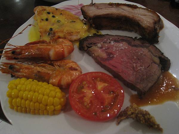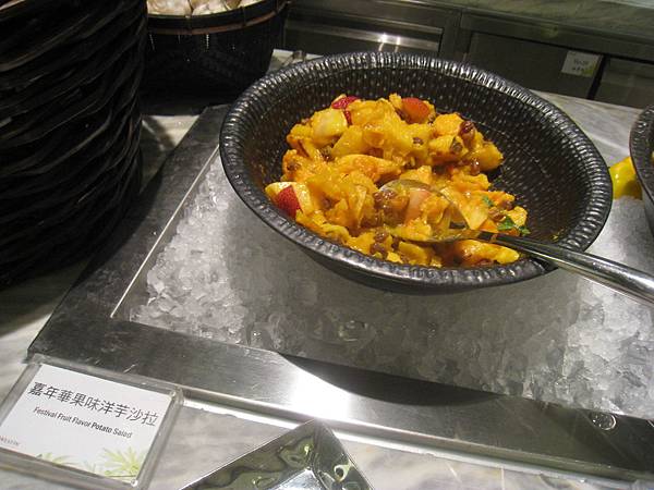 剛好有服務生解釋了這道製程繁複的沙拉:洋芋和蕃薯各自蒸熟去皮切塊後混合水果再加入橙汁進烤箱促進上色和入味,真是道工夫菜哩!口味也還滿特別的,只是吃太多很容易產生飽足感就是了......