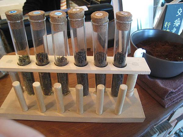 吧台提供試聞香的茶葉,一旁還有交換書籍的活動~