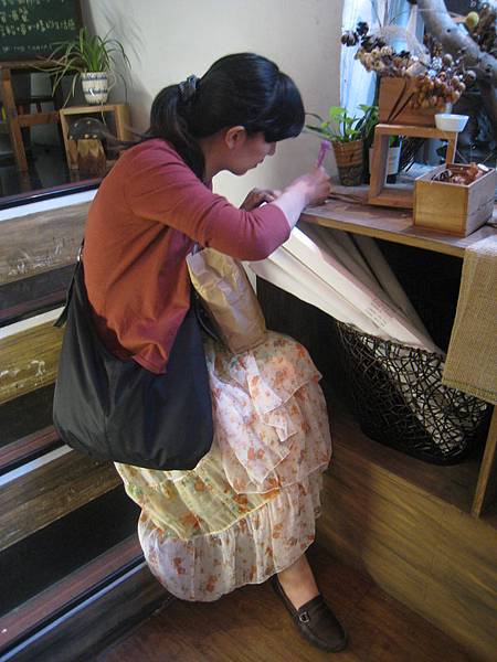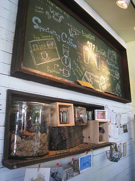 「樹樂集」和中山北路巷弄裡的「蘑菇」一樣沒有菜單,「樹樂集」能供應的飲料和輕食、蛋糕種類和價格都在靠近吧台的板書上,我們各自點了咖啡和麵包或糕點,原來坐在一樓靠門邊寬敞舒適的位置,但因為後來一樓客滿,滿室吵雜回音,我們很快決定移到較為安靜的二樓,雖感覺不若一樓舒適,倒也有另外一種風韻。