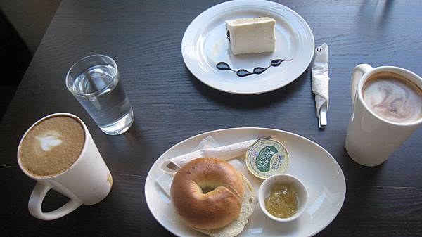 也許因為我選擇的是歐蕾,並無感受到「樹樂集」咖啡的出色,末了要離去時才發現桂花伯爵拿鐵、冰橘香misu拿鐵等看起來很有趣的飲品,也許下回有機會再去時可以試試,關於輕食和蛋糕,我沒覺得「樹樂集」的bagel好吃,也覺得附上的梅峰農場蘋果醬份量太少,但朋友點的和伯爵蛋糕和覆盆子費南雪味道倒都很不錯,尤其伯爵蛋糕茶香芳馥,我看蛋糕櫃裡的金莎蛋糕很漂亮,也許再找機會來嘗試看看。