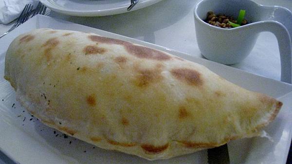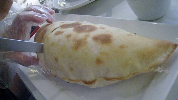 巨大的卡洛佐尼枕頭披薩上桌時熱氣蒸騰~
