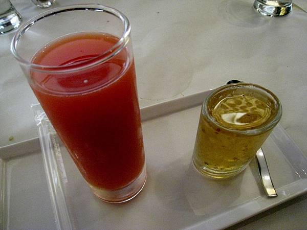 除了前菜以外,飲品和甜點也毫不遜色,大家都很滿意,鮮打蔬果汁應該是胡蘿蔔西瓜汁,但還算清新,不至於濃郁得像波蜜果菜汁,我其實還很好奇黑醋栗接骨木和洋甘菊香柚花茶,也許之後有機會可以再來試試,至於甜點的部份,我喜歡楓糖桂花凍,清爽收口,是很好的用餐句點。