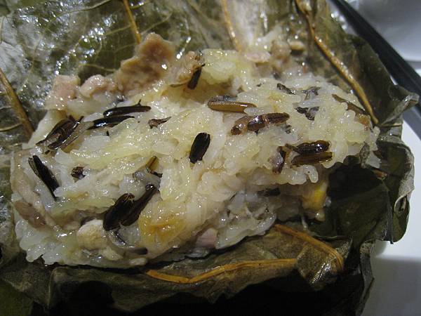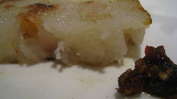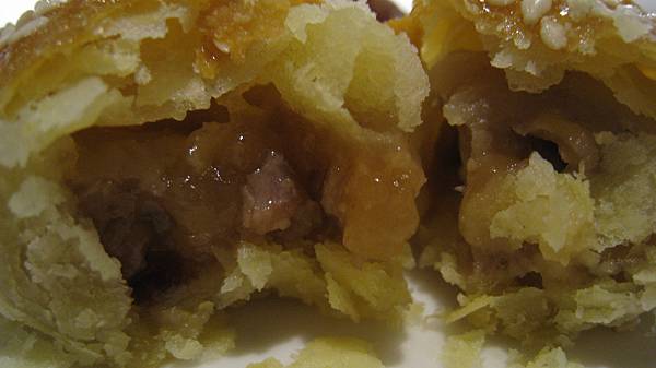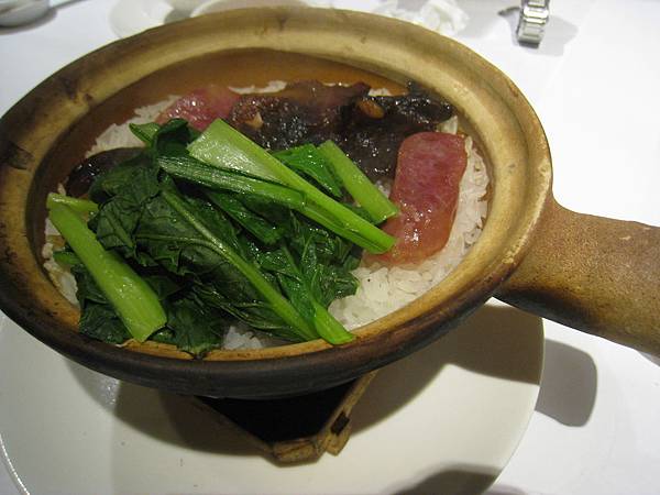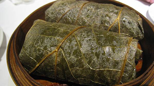 吃過這一輪,我們一行四人還有點胃口,又跟服務生要來了菜單,重新審視了一回,並且偷看了座位附近不斷以流利粵語交談的客人桌上的菜色,最後決定選了野米珍珠雞、叉燒酥和干貝鮮蟹粥,只有叉燒酥不算出色,野米珍珠雞和叉燒酥和干貝鮮蟹粥都將米食表現得很優異。野米珍珠雞看上去並不格外誘人,但一上桌,荷葉暖香輕飄,一咬進嘴裡呀,就會發現米飯的口感非常特別,超過肉粽到逼近麻糬的緊實軟糯,除了兩種米粒混合而成的層次,裡頭還有細碎但不失口感和味道的雞粒,恰到好處的油香滑腴,食畢齒頰留香;干貝鮮蟹粥也是很令我們感到滿意的,使用的是店裡水族箱裡的活蟹,雖然蟹肉不算肥美,但是很鮮甜細緻,這時節恰好蟹黃正滿,粥的質感很文雅,調味很簡單,幾乎就是僅憑靠食材原味博取味蕾歡心,比澳門誠昌飯店的水蟹粥或是板橋六必居的蟹腿粥這兩家大名鼎鼎的店好吃很多。