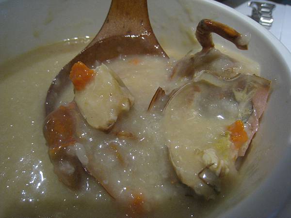 幸好偷看香港人桌上菜色跟著點了干貝鮮蟹粥,米粒熬得軟稀,調味恰到好處~