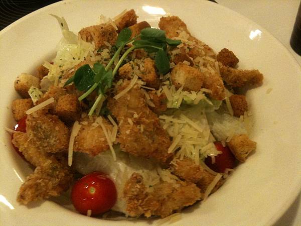 我和朋友都選擇加價八十元的A套餐,是最簡約的,卻毫不潦草、寒酸,餐前麵包純樸,我們像服務生要來了奶油,趁麵包微熱播開抹上食用,口感更為滑順!然後是主廚濃湯,味道很是香濃!也很合適以餐前麵包沾取食用喔!就加這麼一點價格就可以喝到這種水準的附餐濃湯,真是很令人感動哩!主廚好用心!然後緊接著是「義式炸雞凱薩沙拉」,蔬菜份量頗多而且質感爽脆,如果炸雞的質感可以再鮮嫩一些就完美了,而且很不巧的是因為我選了每日限量十份的「松露醬雞塊奶油南瓜起司義大利燉飯」作為主餐,所以當天必須吃很多這樣的炸雞;不然「松露醬雞塊奶油南瓜起司義大利燉飯」其實是很好吃的,米飯富有嚼勁但不柴硬,重點是奶油南瓜醬很清甜,毫無根莖類的腥嗆,是很迷人的一道主菜!朋友的「橄欖油香蒜辣椒松子青醬魚卵鮮蝦」則很妙,看似混合很多食材顯得很雜亂的樣子,實際上豐富美味,鮮蝦質感也很棒,讓我們吃得很開心,而且份量很足,把我們的肚子填得很飽!而我最意外的是最最後的熱紅茶,竟然附上了茶盤!這項服務比使用價格昂貴茶包還具有價值,卻鮮少有餐廳注意這個細節,讓我對於「NO.8 Italian」更刮目相看。