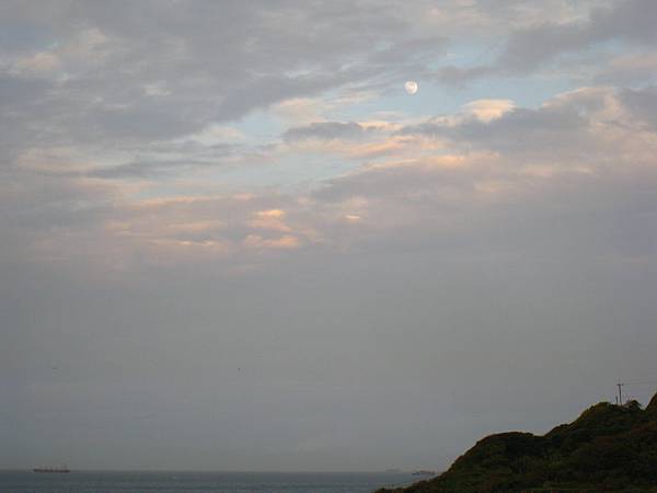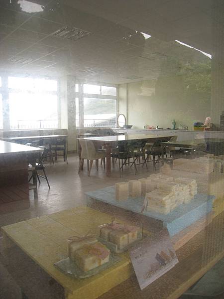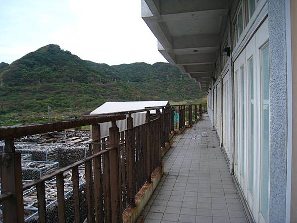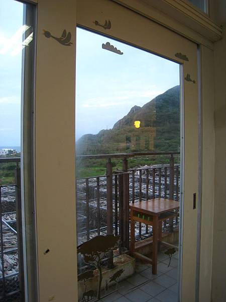 我們很幸運地在「德佈咖啡石門店」擁有大桌子的座位,點選了咖啡和甜點,走出戶外的陽台,景色蒼涼感濃厚,在幸福的人眼底也許只是陳舊破落,在藝術家的眼底也許是渾然天成的創作,我用眼光掃描建築和門窗的線條、繡蝕欄杆的粗糙、背景裡的山形和海色,一瞬間,甚至有點弄不清楚是因為天氣陰,還是空氣裡惆悵氣息遊走,或者根本是原來就有一點點心事沉在心底而感到悶悶的,只覺得眼前景象正和自己的心情相濡以沫。