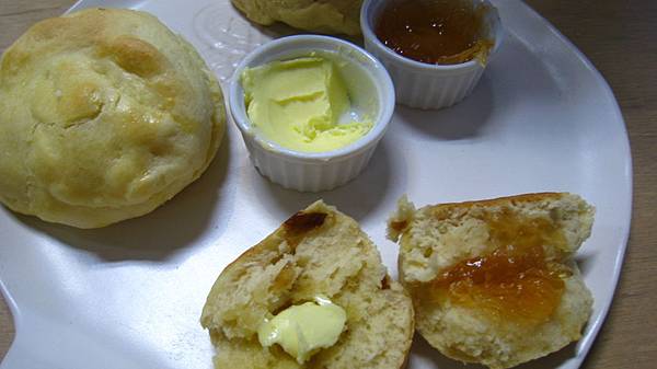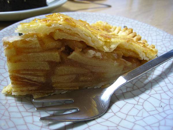 這樣的情緒,得憑賴好吃的下午茶點心撫慰並提升元氣,「德佈咖啡石門店」的甜點相本很可愛,我們點了司康、蘋果派和布朗尼,像群純真的小學生般可愛討喜地開心笑著。司康的質地很好,綿密鬆軟,透著麵粉香,附上的桔子醬味道也很天然,不會過於甜膩也沒有苦澀味;蘋果派則從外貌就看得出皮薄餡多的真材實料,薄薄的派皮透著奶油酥香,夾著層層堆疊、豪氣灑上肉桂粉的蘋果片、溫暖甜美的香氣豐厚,令人不禁聯想起節慶的歡愉喜樂感,毫無矯情的討好,只是樸實地真誠以待,是很值得讚賞的風格;而號稱人氣第一的布朗尼口感扎實但不柴硬,苦甜巧克力的味道很濃郁,而且沒有核桃仁的干擾,我認為很合適搭配拿鐵類咖啡。